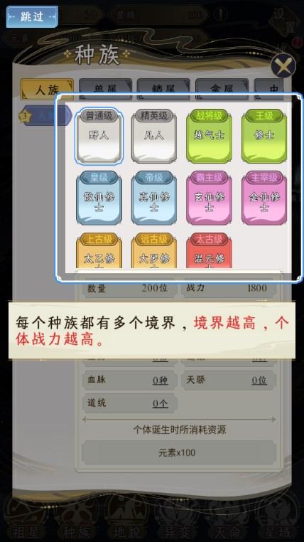 天道创造种族太少了,这个种族多一点,比和灵族,壮族,狼人、光能族、战族、鬼人族、飞天一族之类的,还可以加入一些特殊的东西比如拥有天命的生灵,可以预言的生灵,悟性极强的生灵玩家的操控性要高,不能像天道模拟一样,只能操控很小一部分,比如我可以把机缘给谁以及指定某个人成为这个时代一个国家的皇帝,并且让他成为他那个时代的世界主角然后加入特殊事件:系统、天外之魔、主神空间、克苏鲁、天外的神秘一击