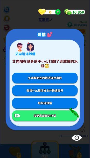 2.进入游戏就开始了,它的整体由一开始的单身一人。慢慢的会出现一些让你去做选择的内容,而且选择不同,后面的结果也是不一样的。