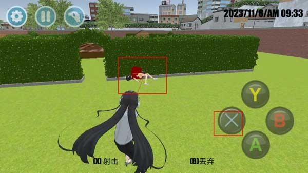 5、角色靠近学校里的武器、体育器材、道具等,同样还是捡起和丢弃功能按钮。