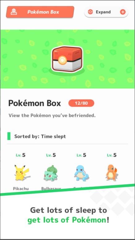 到您醒来时,神奇宝贝将根据您的睡眠类型和睡眠时间聚集在神奇宝贝睡眠中。对这些神奇宝贝的睡眠方式进行研究,以完成您的睡眠方式 Dex!