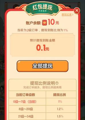 红包按百分比提现的,使用支付宝的话只需要0.1起提。