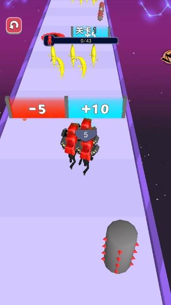 香蕉战场跑酷游戏是融合了现在抖音热梗大香蕉的故事,这个游戏中的魔性大香蕉BGM非常让人上头,游戏玩法简单,就是操控监控人跑酷,穿越一些简单的加减乘除的门,击败来袭的大香蕉怪物就可以顺利通关,游戏还是非常不错的,喜欢的可以下载和体验。