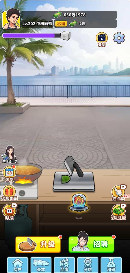 点击招聘,招聘、升级美女助理,获得金钱(秒赚:每秒自动入账)且美女助理会出现在屏幕上
