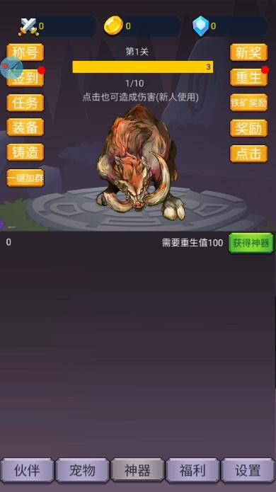 重生:每天5次必须用完,有时间的最大关卡在转,最大的意思是打老板30秒还打不死,没时间的80就转了。群里我总是看到有人说这个费时间,其实是你们不懂窍门。重生后点击屏幕,伙伴里的铸造大师,烟斗老者,狼公主都是加点击伤害的可以直接秒几百关,能秒的层数跟点击伤害有关,然后再挂一个小时就能到最大关卡,用完最多5.6小时