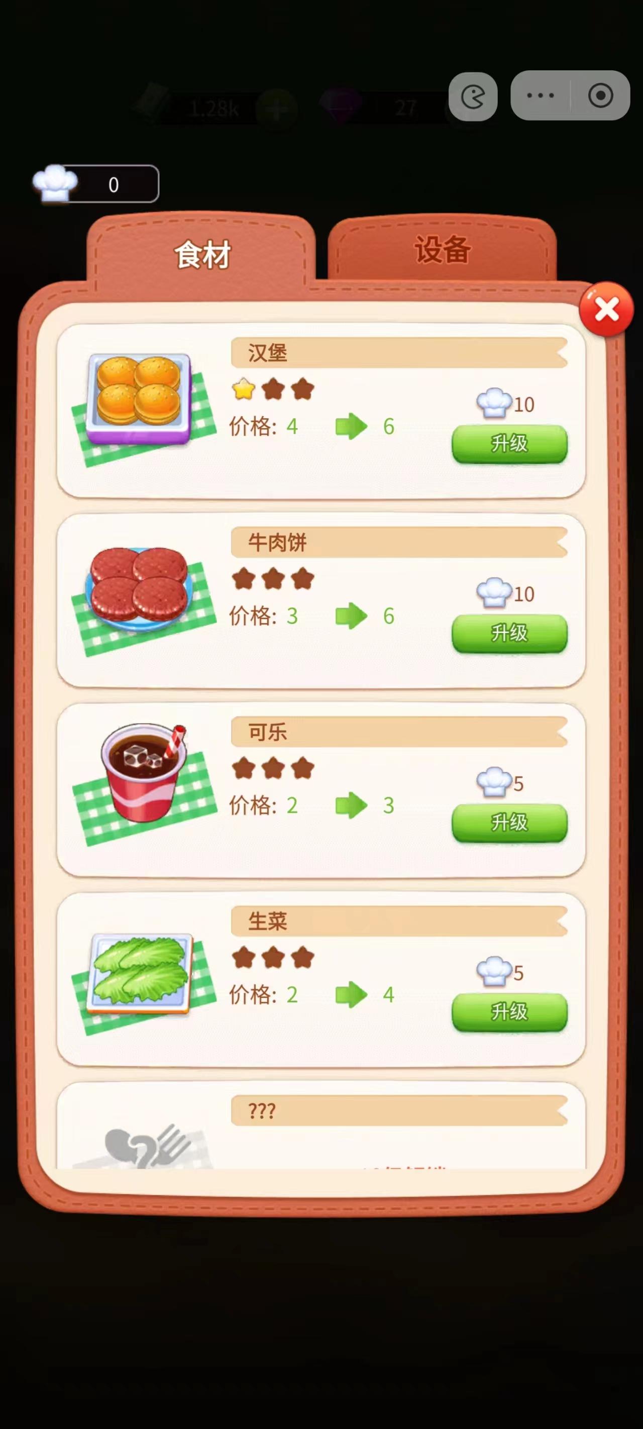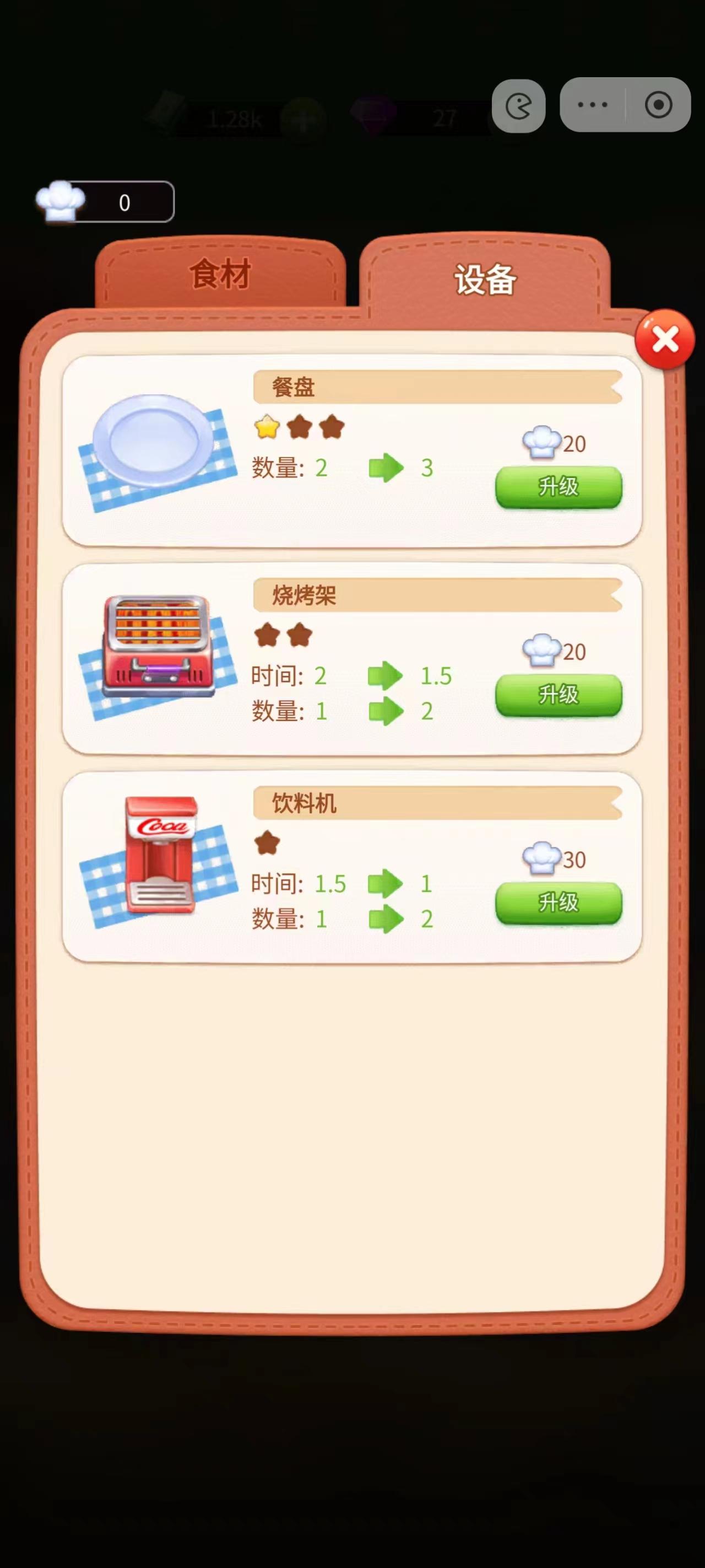 提升食材和设备等级来提升餐厅收益