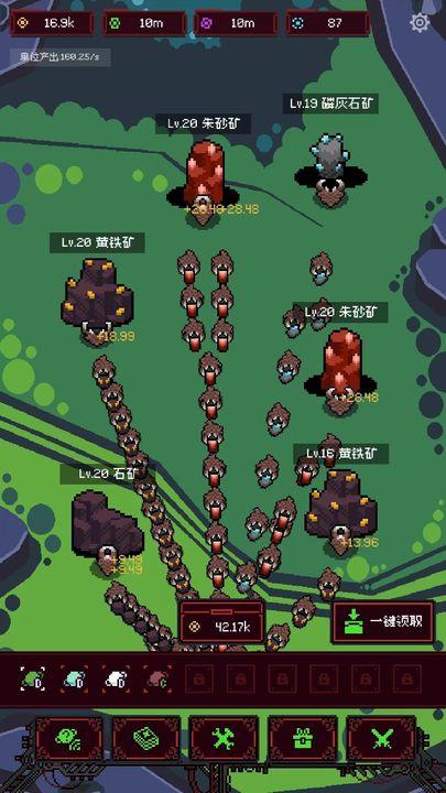 画面是经典2D像素风,很多单机独游都是这类画风。界面布局合理,UI品质较好,大小上有点像PC端,一些按钮有些偏小,有调整空间。放置动态效果比较丰富,看虫群忙碌有一种在看蚂蚁搬家的即视感。