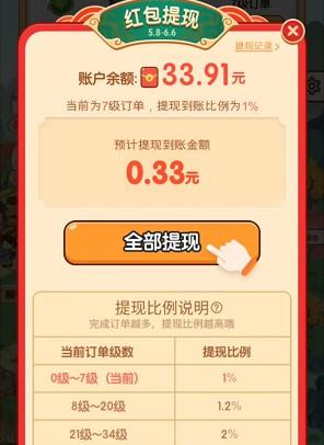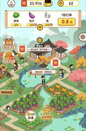 完成订单:游戏内会有各种订单任务,玩家需要按照订单要求种植特定的蔬菜和水果,并在规定时间内完成交付。成功完成订单后,玩家将获得红包奖励,红包金额与订单难度和完成度有关。