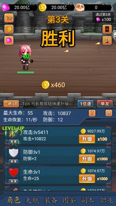 可玩性:推荐时间不是很多的挂机党玩,副本前两个都做了跳过处理,只要打得赢,省了很多时间,作者还费了大力气做好了离线系统,大部分时间都是离线度过,不需要很卷。