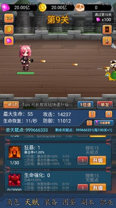 建议:金币副本的怪有点强,还能削弱一下么。钻石副本还不能跳过,不过我相信作者大大很快就能解决这个困难的吧?还有职业的技能点已经多出来很多了,可以再出点其他的技能或者加强技能的上限。
