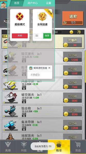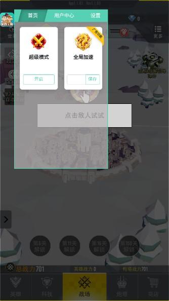 终极要塞内置斌哥MOD菜单是一个跟塔塔守卫战类似的一个非常好玩的塔防游戏,玩家需要保护自己的防御塔不受到伤害,击败各种小兵获取金币,提升自己防御塔的能力,游戏也是放置类型的游戏,喜欢放置类型的千万别错过!解锁斌哥MOD菜单,超级模式,增加游戏速度。