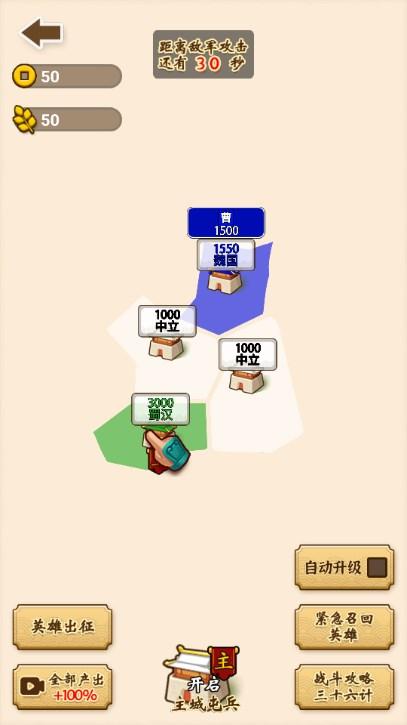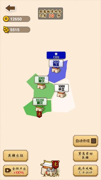 你占领的城池,将会源源不断的为你提供士兵、粮草和金钱。这些士兵与物资,是你取得胜利的重要依靠。守护好每一座城池,是百战不殆的根基。