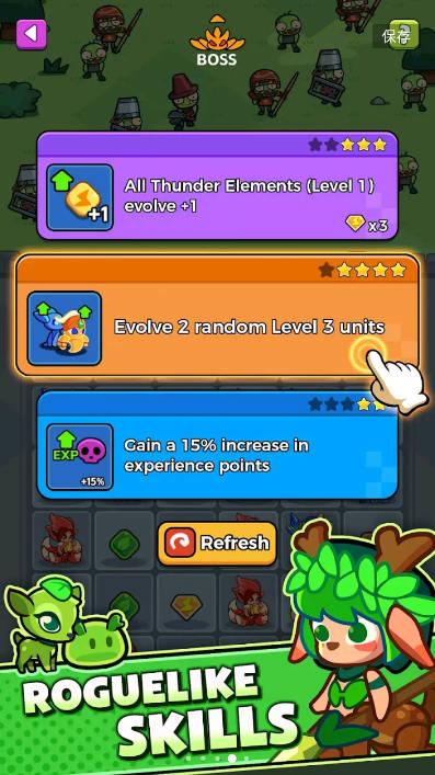实时战斗与策略调整:采用实时战斗模式,玩家需要密切关注战场动态,根据僵尸的攻击方式和数量变化,及时调整防御策略。在战斗中,玩家还可以利用史莱姆精灵的元素技能,对特定类型的僵尸造成额外伤害,提高防御效率。
