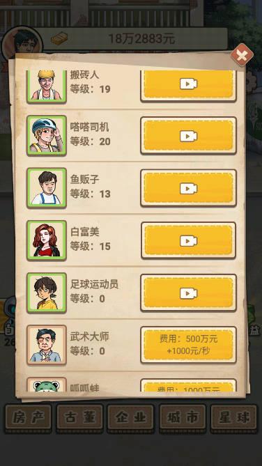 这个机制十分容易上手,总之就是赚赚赚、升级升级升级,当然,除此之外,游戏还额外设计了拍卖、股票、挑战赛等等。股票与拍卖具有商业性质,一般的游戏也可涉及到,就这个挑战赛机制值得一讲,并且它也成为这个游戏的特色之一。
