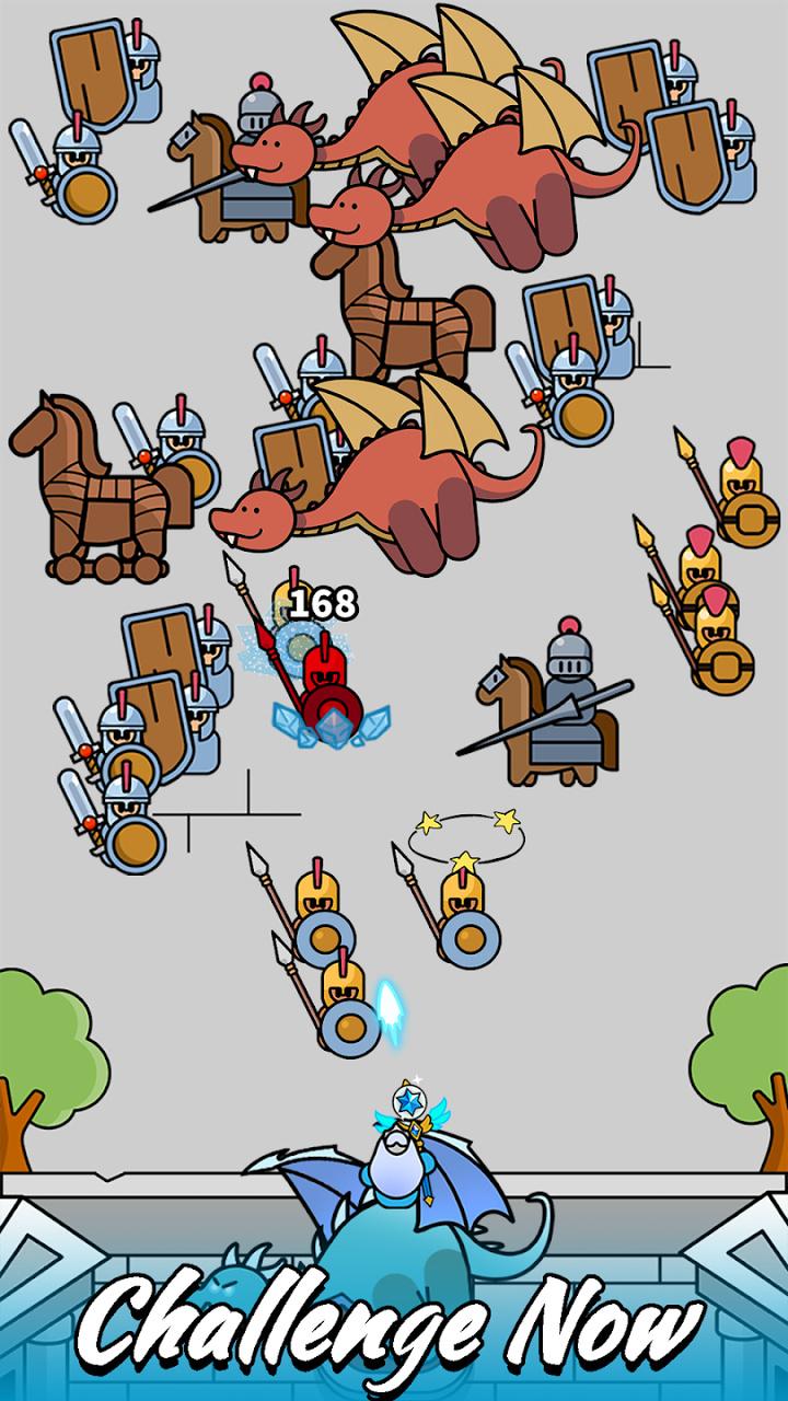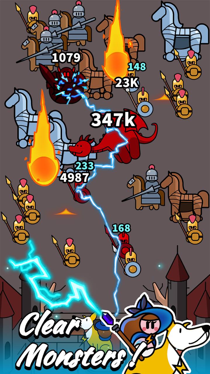 勇士突袭最新版游戏是一个放置冒险类型的休闲游戏,这个游戏中我们需要进行对抗史莱姆,游戏玩法类似于正中靶心,是一个塔防类型的游戏,这个游戏中我们需要使用各种武器点击屏幕进行攻击,击败对方掉落经验值就可以提升等级学习技能与BUFF了。