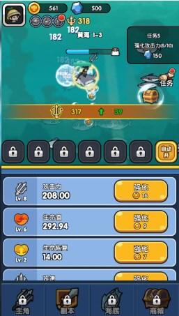一款不需要操作的就能战斗的游戏。解锁炫酷的技能、伙伴、在海底手握鱼叉,尽情叉鱼!