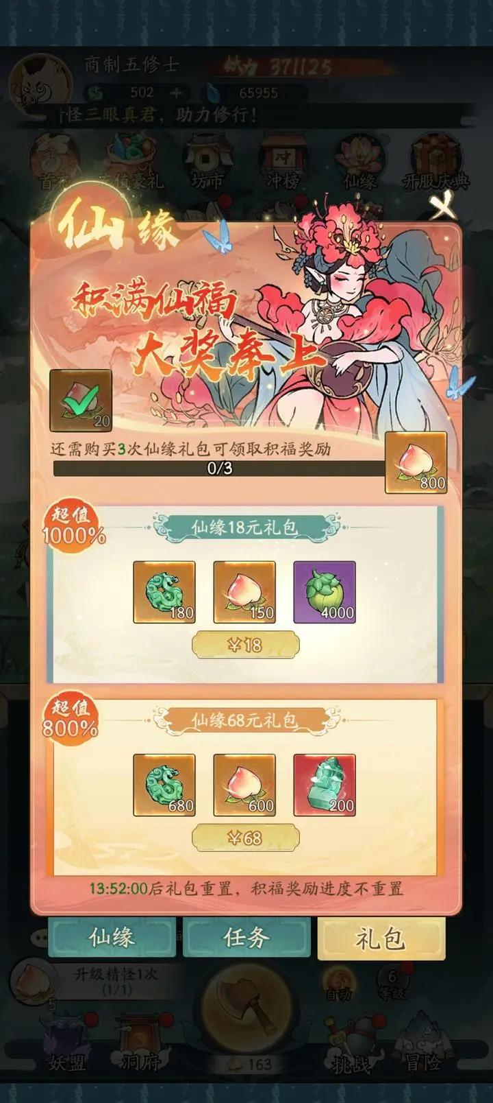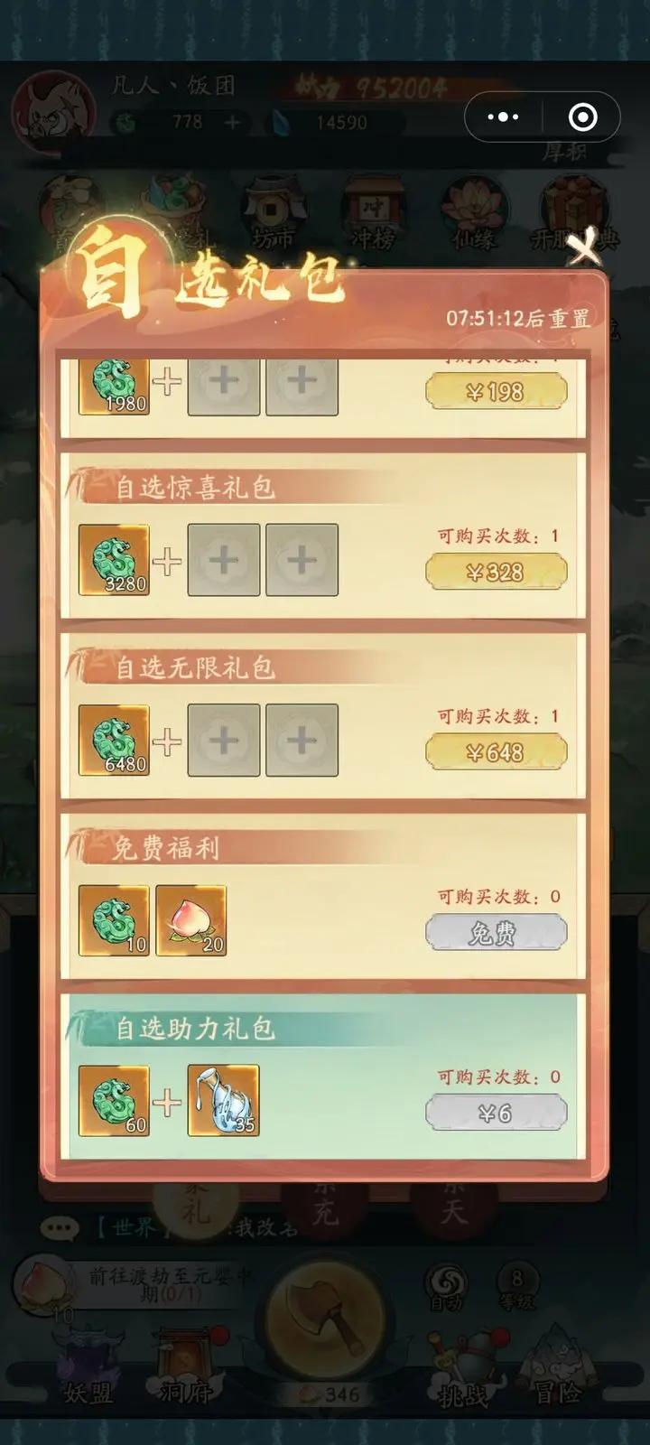 用桃子砍树提升妖力是这游戏的主要提升实力的方式,也是占比最大,收益最大的方式。每天保证100次老鼠偷满桃子,可获取1000-3000的桃子。而商场里的礼包500桃需要30r,1000桃需要128。也就是只要你能保证桃子偷满,可以获取相当于价值370rmb+的桃子。这么一对比,是不是这游戏对白嫖挺友好的?