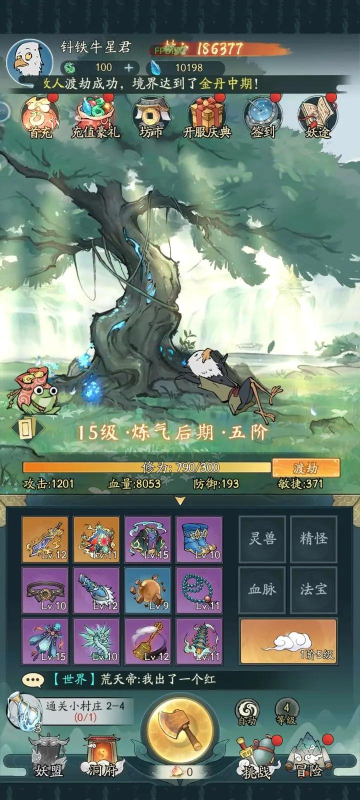 修仙类的轻型小游戏,适合休息放松的时候玩。开局从猪、鹰、鱼三个动物作为修仙的起点,但是,我感觉选哪个区别不大。所以自己喜欢哪个就选哪个。