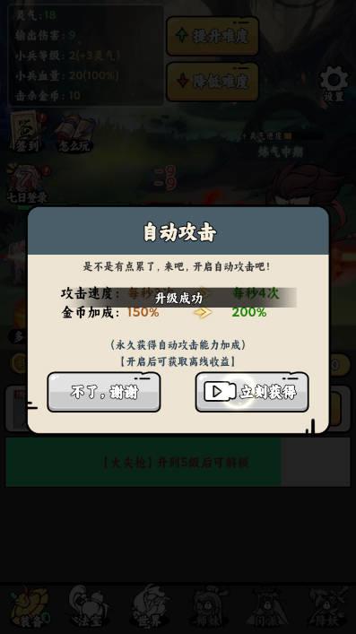 3、挂机不再需要一直手动操作,只需要放下手机让游戏自己运转即可轻松升级。