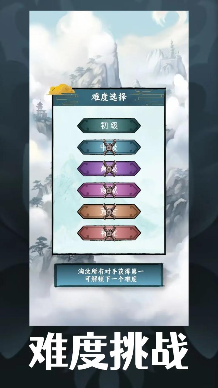 作为休闲游戏有些另类,战斗时长被拖得很长,倒更像是策略游戏了。战斗类似于打牌,每个回合抽到三张技能“牌”,有一定随机性。不同阶段技能牌库似乎有少许差别,有目标选择和先后顺序策略,对于等阶突破是唯一目标。没做新手引导,设置里放了游戏说明,但对于规则仍然不清不楚。初玩之下,看四个人打得有来有往,但后面全部是重复的流程,策略变化很少,慢慢变得枯燥。