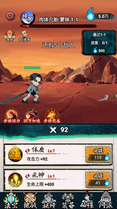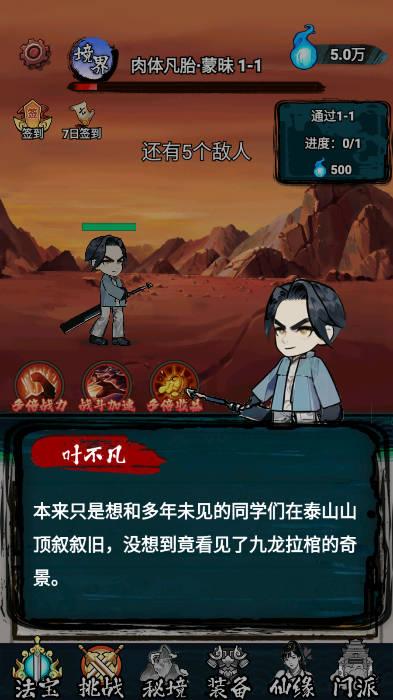 相信不少玩家从小就怀揣着一颗修仙心,常常对修仙小说中的“剑仙”抱有种种幻想,奈何大家总是匆匆于生活,难以畅快逍遥。我们的初衷是做一款不需要玩家耗费大量精力脑力也能如“剑仙”般斩妖除魔的游戏,从最初的凡人到后来的剑仙,从默默无名到只手遮天,让玩家在过关斩将的快乐中感受修仙文化的魅力。