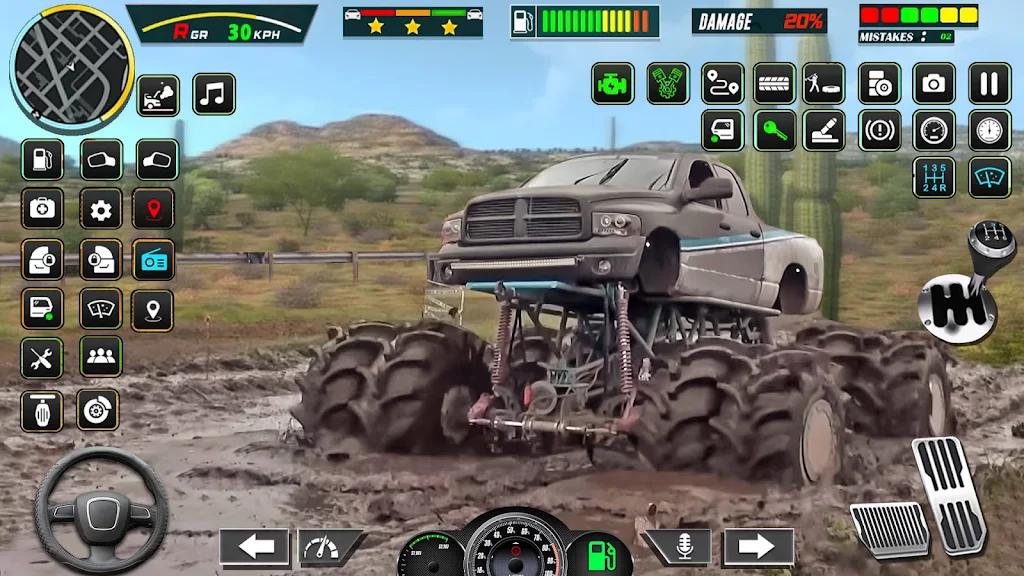 您将通过跳跃赛道、泥泞的森林、土路、未铺砌的道路和爬山来展示您的6x6越野赛车技巧。您将在泥浆车游戏的越野赛道上驾驶4x4重型卡车、越野车、强大的越野车、重型拖拉机、特种吉普车、布吉货车和4x4卡车。在泥浆卡车游戏:怪物卡车中轻松了解越野驾驶。忘记简单的越野吉普车驾驶、泥浆卡车游戏、卡车模拟器游戏、越野驾驶游戏或泥浆骑行游戏。