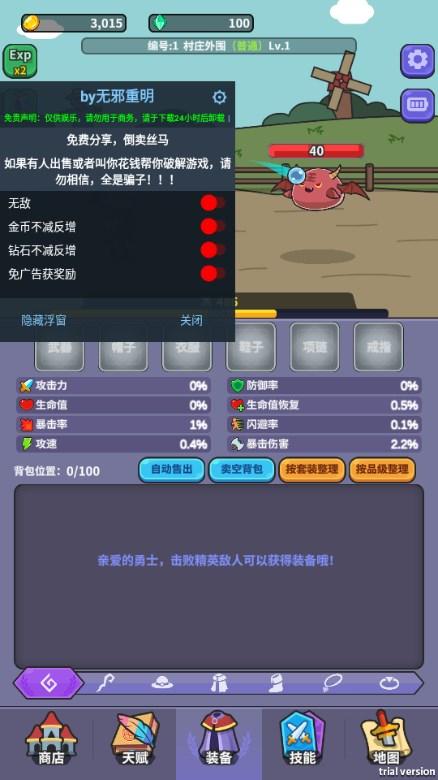 勇者变强之路免广告不减反增版是一个放置挂机收菜的一个游戏,这个游戏中我们需要通过提升我们的属性从而进行放置挂机,游戏非常好玩,我们需要帮助勇者一步步变强,游戏解锁免广告获取奖励。金币钻石不减反增,解锁无敌。
