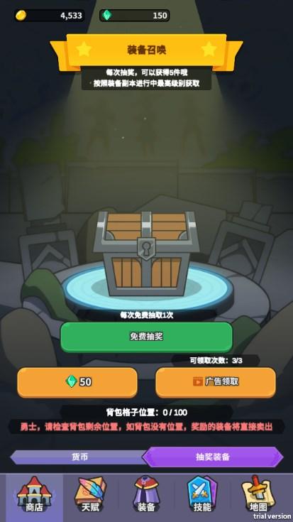 接着就是无法看广告免费得道具,快速去楼层的道具也就不能使用,所以很费手指跑来跑去。有些道具能任务重复获得给几个人。攻击的剑和防御的盾,需要每次要升阶都要跑回一楼(可以死回去),然后从一楼慢慢爬上去很辛苦,建议听其他音乐。