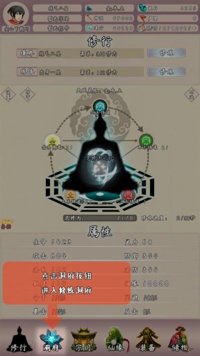 洞府系统:每个角色都有对应的洞府,需要自己收集机缘建设洞府。