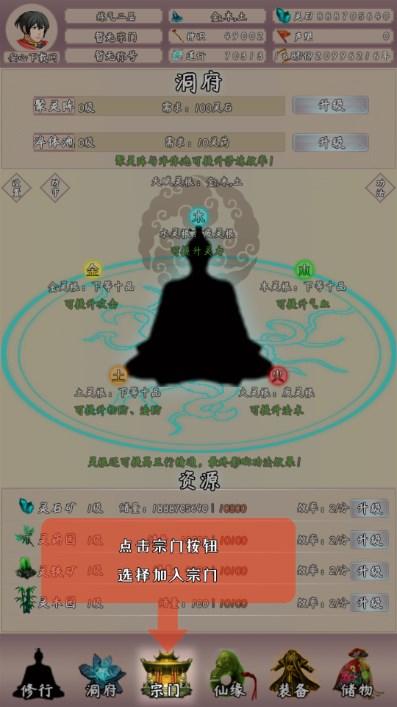 游戏前期就是经典的攒属性,在修仙门派中被称为功德,功德通过门派的庇护人数来获得,功德可以升级被动技能,如增加修炼速度,突破概率,炼丹炼器效率等等。