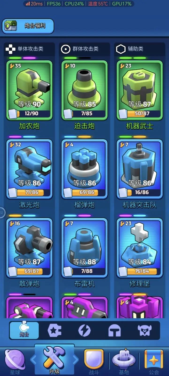 3、操作性。与其说是塔防,更像是放置类游戏,每个炮台的属性都已经分类了,基本就是哪个炮台属性强就放哪个,无非考虑一下对地和对空,以及单体、群体和辅助简单搭配一下就行了。