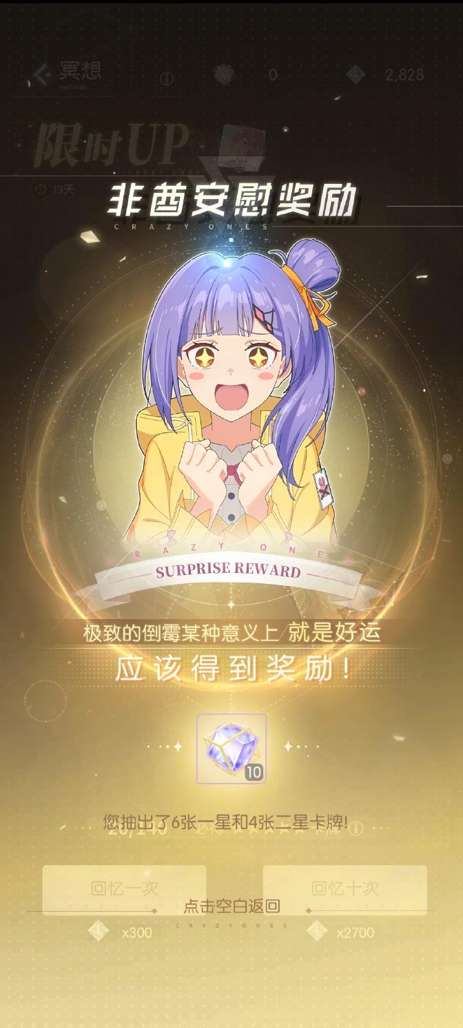 2.抽卡,48抽up池,我就没一个五星,其中两次十连都是一星二星混合,保底需要140抽,保底up需要280抽,当然详细的内容看“枝云上”写的评论,相应内容比较完整。
