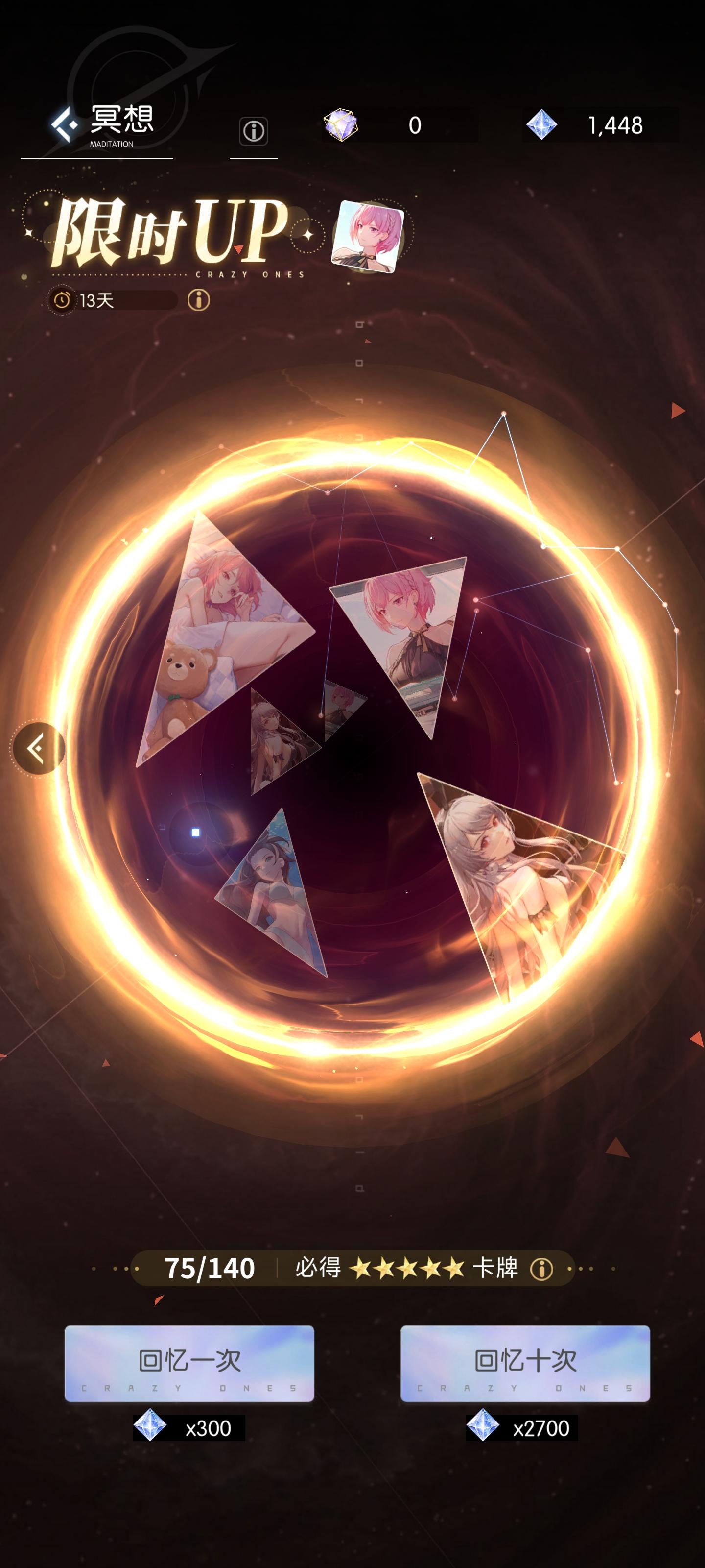 抽卡,保底太高了(140),虽然我现在是两金,三个五星(包括前面两个金),但还是有点高。抽一次十连是2700(价格也不便宜)( ̄へ ̄)