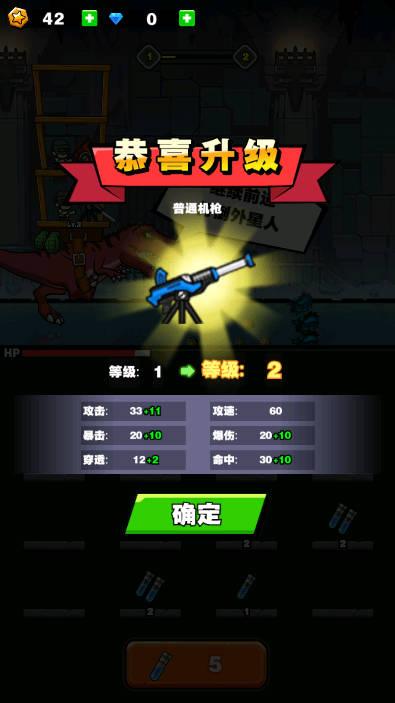 5、闯关成功即可获得奖励,而随着关卡的不断递增,敌人也会越来越多,你需要更加强大的武器和恐龙才能应对;