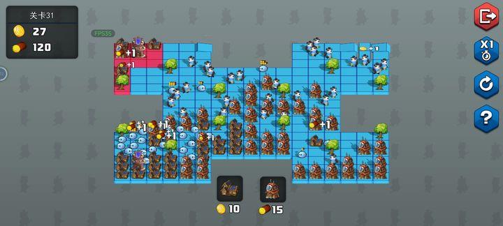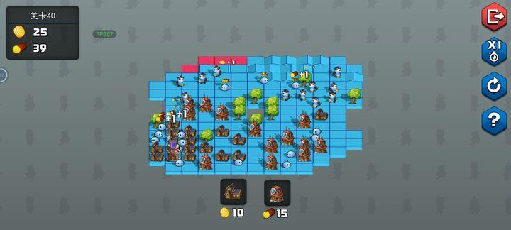唯一的爽点,概率卡到好位置,有一个怪疯狂砍木头(树木与建筑之间疯狂弹)。有一定的策略性,多玩几把,就知道该怎么玩了