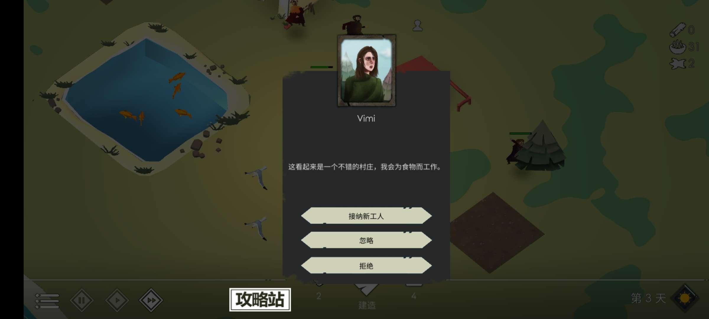 钓鱼码头需要使用20木材进行建造。钓鱼码头可以设置两位渔夫。钓鱼码头是重要的食物来源,工人将通过钓鱼获取食物,食物可以为工人提供能量,如果食物数量不够就有概率会触发小偷事件。