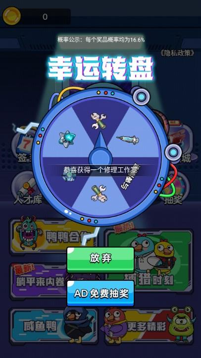 鸭鸭躺平记1款充满创意的休闲闯关游戏,玩家需要在游戏中扮演一个鸭子,在飞船中灵活冒险,快速对各种游戏陷阱进行躲避,这款游戏的操作十分简单,玩家可以快速掌握游戏的冒险技巧,鸭鸭躺平记玩家还可以快速对你的防御工事进行升级,让你可以获得非常不错的休闲游戏乐趣。