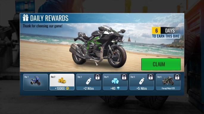 看起来其中对于很多车辆的选择拥有不同的解锁需求,但是所进行购买之后可以发现基本所有摩托车所呈现的马达声没有任何的改变,甚至整体所呈现的也就是单纯数值方面的属性呈现,如果你仅仅就是对于车辆的外观来进行购买和解锁的话,真正进行游戏之后,就以这种画风和画面的呈现效果来看,就没有任何的吸引程度,所以真正所进行购买和被吸引想获得的话,那种机会也基本没有任何情况发生,所以游戏当中真正所带来的效果究竟是为了什么?而且对于这种画面到如今现在可以说没有任何实际能抢占市场的地位,完全就是一个很难以让玩家接受的观感和画质的呈现效果,我觉得体验这款游戏,还不如真正选择其他类型的作品,或许尝试之后拥有更多不同的体验,甚至对于智能机刚刚进行推出的那段时间,市面上所出现的相关题材的游戏作品,都比这款游戏的画面上的体验能强上许多,或许游戏就是仅仅把电脑的资源所进行移植在手游当中,强硬给玩家所进行尝试。