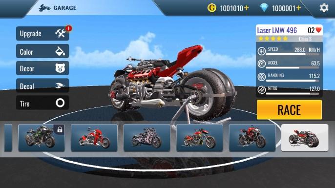 对于游戏当中在不同摩托车之下,也会包括一些养成的内容,玩家也可以通过每次比赛的完成之后获得的一定金钱数量来进行提高,各方面属性和速度的增加看似非常有作用,但是实际所进行升级的金钱还不如所进行购买后期其他新的摩托车提升的属性也更加性价比一些,所以对于赛车没有获得的一些指标或者逐渐解锁的要求,这也会导致玩家对于整体的升级情况的需求并没有什么太大的作用性,对于关卡方面,后期根本就没法所进行选择,基本就是以一个关卡内容所重复挑战的体验,所以对于不同敌人的难度增加和AI的提升就没有任何所呈现的地方,所以对于养成和不同解锁的摩托车作用又是为了什么?