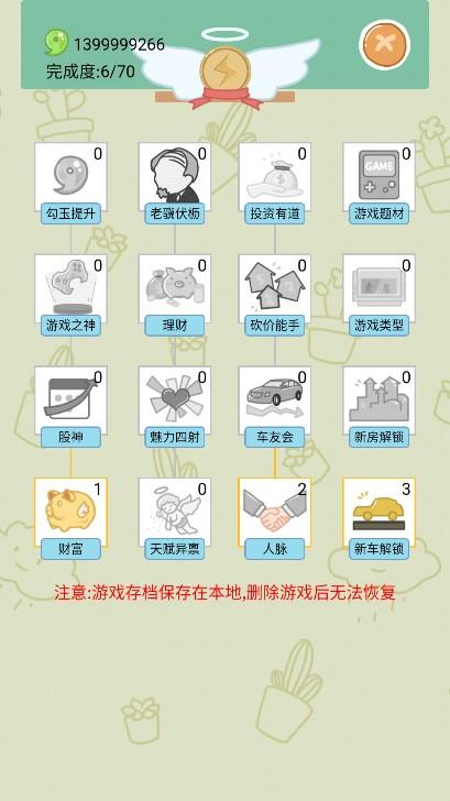1.卡通风格新颖,目录界面简洁清晰,包括天赋、成就、生活经历等内容选项。