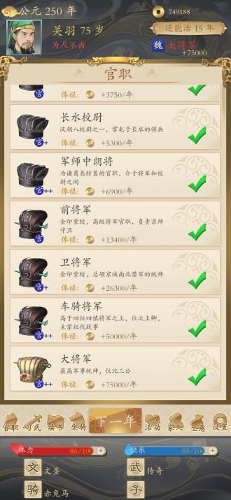 6.经历名将人生:游戏里有单独一个玩法可以让大家以个别名将或名臣的视角去体验游戏,在这里将可以经历专属的剧情和挑战,体验不一样的三国人生。