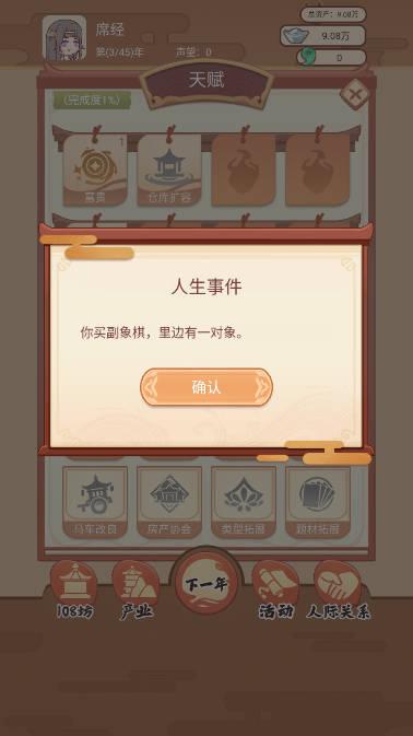 不同于传统的人生模拟类游戏,在本作当中最主要的玩法还是比较特殊的,说起来这应该也算是人生模拟游戏当中一个比较重要的分支了,毕竟我之前所体验过的跑商游戏也不在少数。但是从本作当中所突出的问题也恰好在此突显了出来,“人生模拟”注定是一个长线的玩法,但是对于“跑商”这个玩法来说合理进行规划以及重复性的游戏玩法却是较为常态化的表现。可是我们必须要考虑到另一个问题,那就是对于“人生模拟类游戏”来说最重要或者说最忌讳什么?答案显而易见,长线化游戏过程就要做到玩法的多样性,而不是去把玩法给固定到一个单一的模型或者说玩法当中,这对于一款人生模拟游戏的影响可是非常之大的。