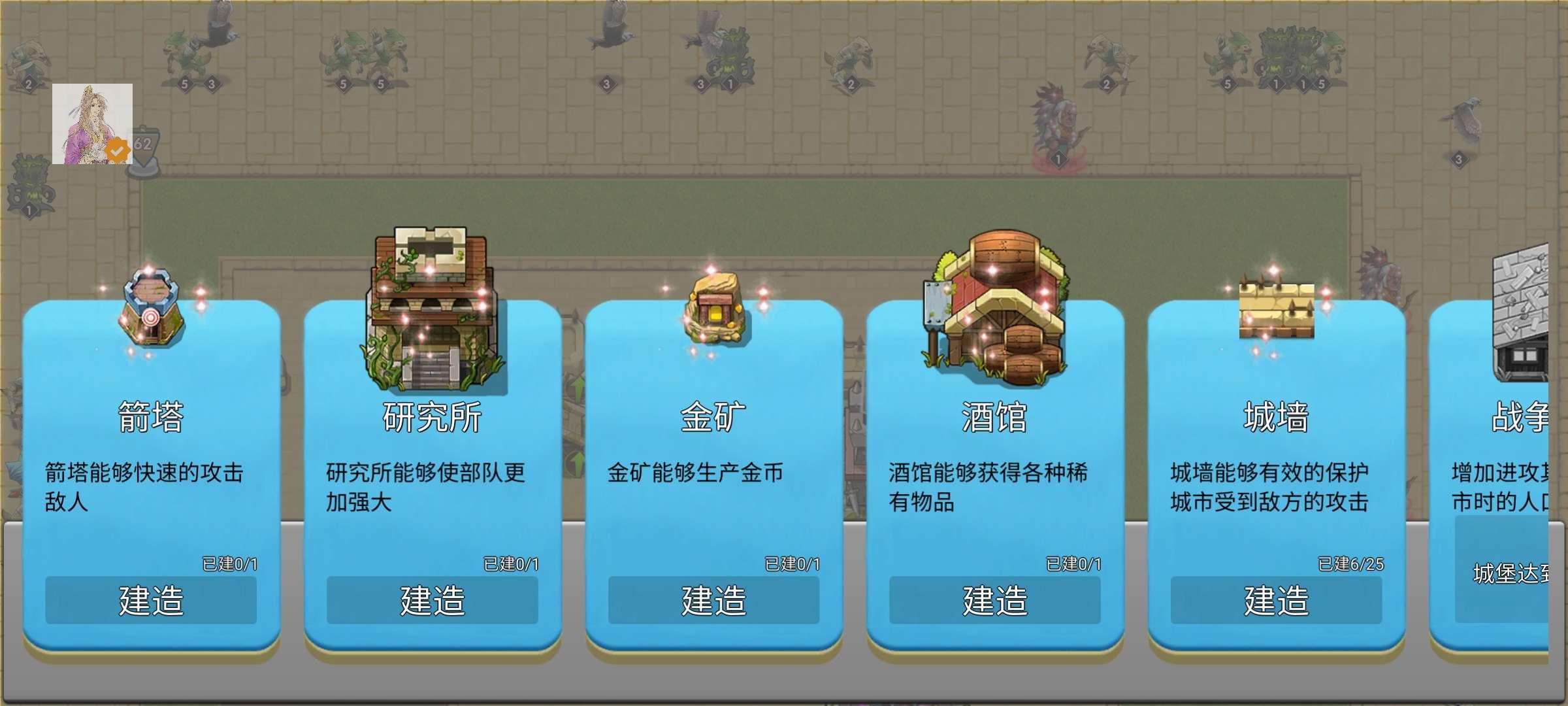 游戏玩法:游戏玩法,可以建设一些防御措施,训练士兵,防御怪物的攻击,游戏开始的剧情是一个帝国,某一天有魔物来攻击城堡,帝国内为了防御魔物的攻击,训练兵种防御魔物的攻击。