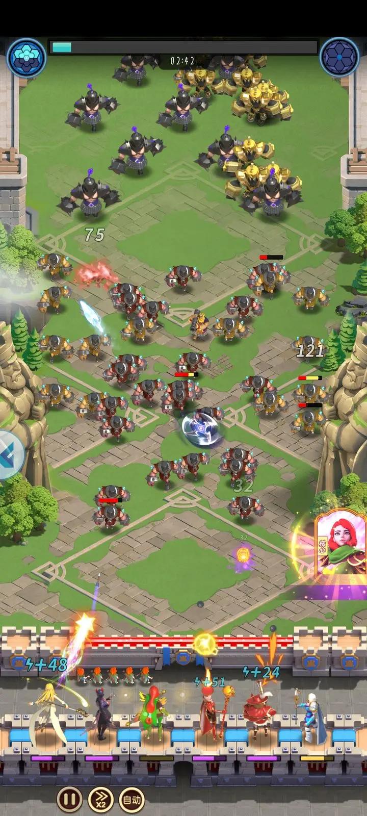同屏500+海量怪物进攻,各种阵形不断变化进攻城堡。