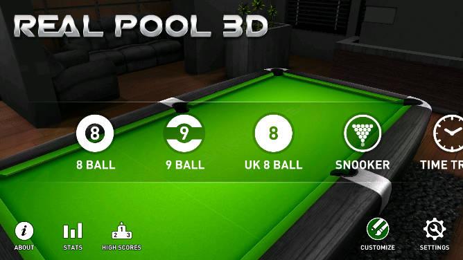 2、3D台球大战是经典的8球台球和最新的游戏形式。