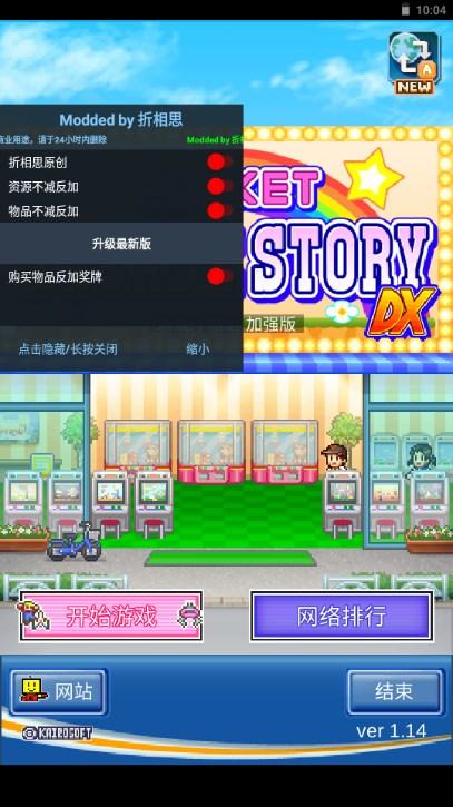 游戏厅物语加强版内置MOD折相思菜单(net.kairosoft.android.gamecenterdx)是开罗游戏系列中非常火爆的一款作品,经营游戏厅,在这里你是一家游戏厅的社长老板,你需要通过你自己的经营手段来招募客人进来游玩,开罗像素风格经营休闲小游戏,解锁折相思菜单功能。