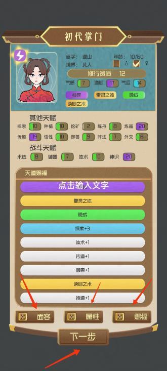 1 开局不要纠结在自己创造的人物身上,在我看来自己创造的人的资质是没有刷出来的弟子高的,而且因为会因为开荒死亡。