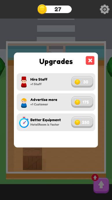 最初我也不是想做一个咸鱼,我也是抱着宏伟梦想想要变成一个酒店大亨,游戏介绍里面一格一格的小房间,以为需要在自己的操作下变得豪华,根据装修喜好来收揽不同的顾客,提供牙膏,毛巾,拖鞋等服务,当我进入游戏仔细研究该怎么赚钱的时候?我笑了,根本不需要,顾客入住后打打电话就给钱,睡觉也给钱,自动化管理把我变成只会升级的傻瓜,还是做一只咸鱼好了,作者把你安排的明明白白的,一个挂机游戏要什么自行车,当然我更希望内容能更加丰富有趣一些,游戏目前来说比较欠缺操作性。