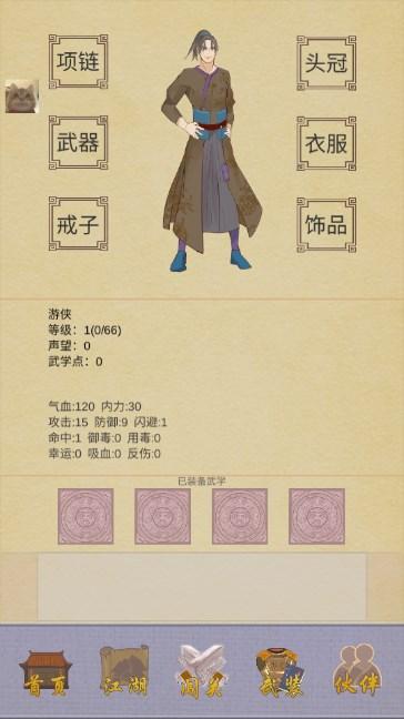 不过游戏的内容和文字显示都不错,而且对江湖主题的运用也很贴切,游戏也没有任何充值点和广告,一些小毛病也是可以忍受的,毕竟是单人制作还是要支持的,大家如果喜欢此类游戏的话也可以试试