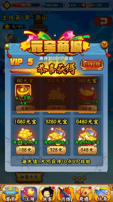 在逐渐等级的提升过后,游戏将会解锁更多类型的奖励获得的机会,在这里玩家基本所获得的内容都是我们所需要养成方面消耗的道具,因为游戏对于每次升级所需要觉醒的道具类型数量很多,所以并不是通过一个逐渐提升的阶段来增加觉醒要求的道具数量,至于这些想要获得的话,只能通过挂机和时间的消耗来通过游戏刚开始的宝物来进行获取,也能通过其中挂机的奖励宝箱来获得一定的金钱和少部分基础的道具,但是对于一些氪金货币的情况来说也是拥有一定的机会,玩家也可以通过每天登录的方式来进行获得少量的元宝,帮助自身的发展,但是可惜的就是大部分购买的东西都是直接充值的方式来获得。