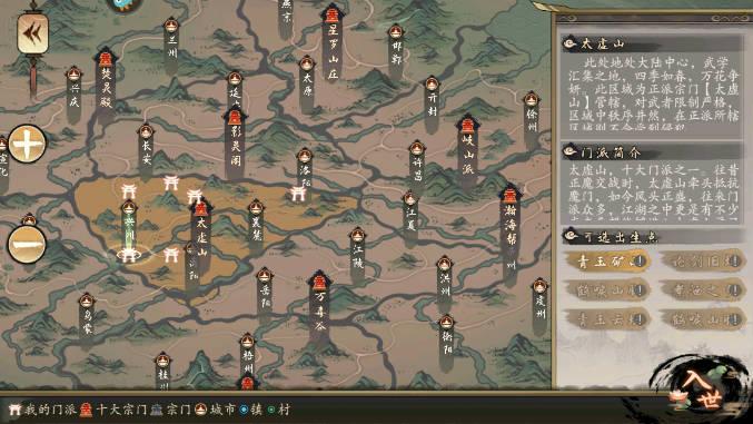 镜头中出现了一块大陆,你在上面看到了十块区域,每个区域上都点缀着一个闪亮的标志,上面写着不同的名字,像太虚山、影灵阁等等。然后从这个标志上辐射出千百条光线,将所有小点串联在一起,形成一张密密麻麻的大网。